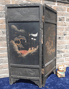 Small Black Screen .. 2 panel folding Dragon decorated 'large' 1metre tall mirror with really smart frame. Lots of decorative uses, why not pair with our black table.