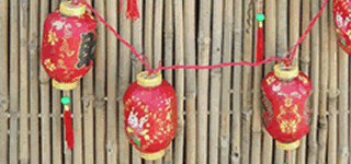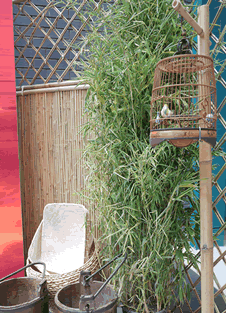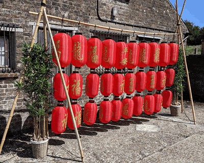 Bamboo Tripods supporting Lantern wall with Bamboo Plants. Another Different Shape (Tulip) Traditional Lanterns