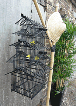 Bamboo Bird Cage with 2 Red and Pink Finches. 3 specific bamboo bird cage stands .. 2 X 5ft High 1 x 4ft High