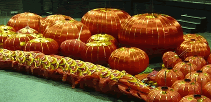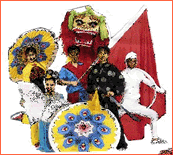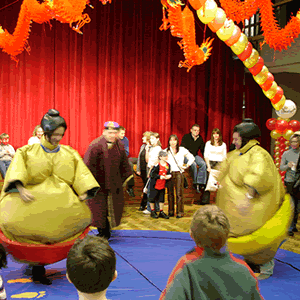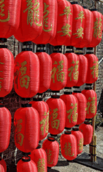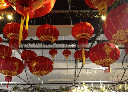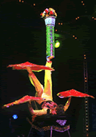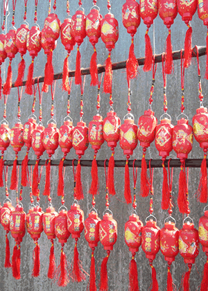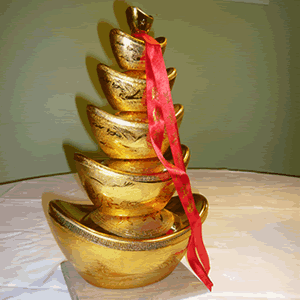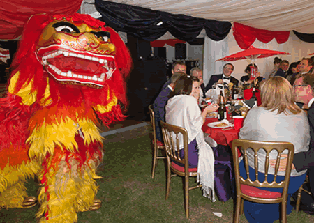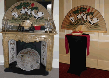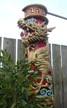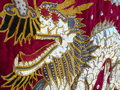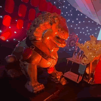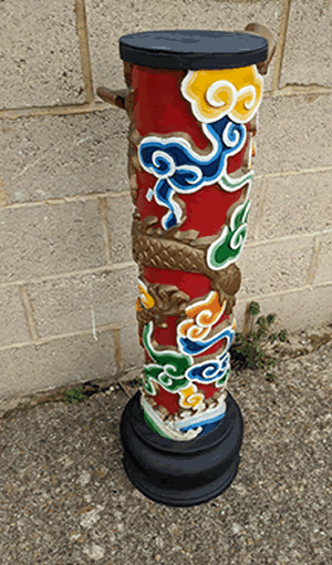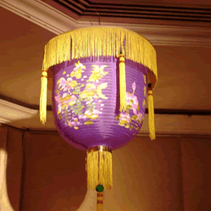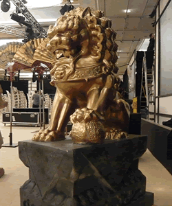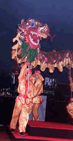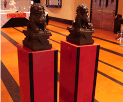 | Lion Carried Scrolls Traditional Scrolls, presented in a traditional way from Lion Heads mounted on top of decorated pillars. Overall Height 6ft The Scrolls are silk (58" x 18") with Gold embroidered and appliqued traditional messages ... Happy New Year and 'Rise Step by Step'. They hang from the mouths of Lion Heads 18" in diameter mounted on top of 6ft self supporting posts . ... ITEM: 1436 ![]() |