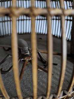 ... ITEM: 1369 Cricket / Grasshopper Antique Cage A unique item this original and decent sized skilfully hand crafted rough wood and Bamboo cage for crickets/Grasshoppers (kept for the sound) is more realistic thanks to the 9cm artificial Grasshopper inside. |