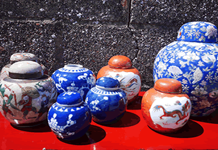 Huge Chinese Vases Pair A set of 10 Ginger Jars of various sizes, ideal decrative items. Japanese Sake Barrels Red vintage 'coopered' two handled 'Sake' barrels, used mainly for