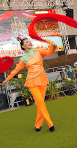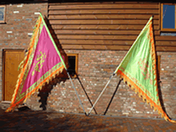 | Lion Dance Troupe Banner 26 inches diameter by 38" Drop these are beautifully heavy embroidered traditional banners used as part of the parade. Presented here on free standing floor mounted poles 8ft high ... ideal as focal points within the centre as they are to be viewed from 360 degrees ... ITEM: 1460 ![]() |