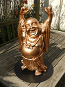 Buddah, Gold Seated Plinth is fully covered in fabric 18" x 30" x 40" high ... with optional red runner Buddah Statues on Plinths Weathered Gold Buddha Heads