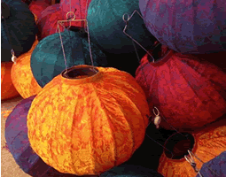 Approx 120 off 60cm x 30cm in stock, mix of 5 colours ITEM: 1235 Oriental/Asian/Vietnamese Silk Lanterns Palace Wooden Lanterns Mini Lanterns Large Tulip Lanterns Strings of Lanterns