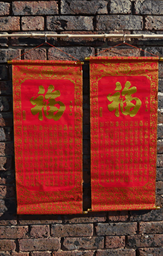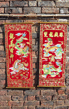 Vintage Hanging Decoration Scroll .. with wood panelsand heavy